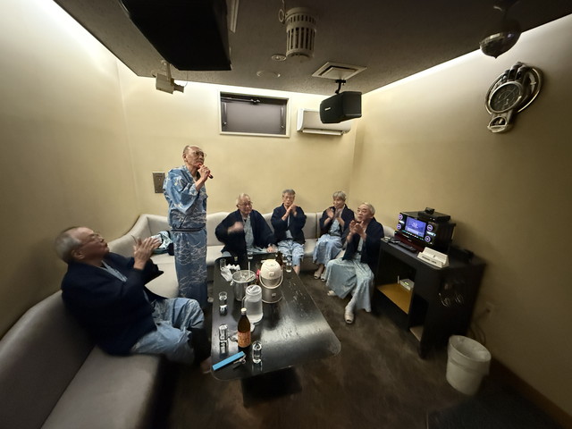 6時から食事、宴会。今回の参加者は山本、佐々木、薮田、阿部、渋谷、碇谷、木村の各氏。今回は8名が参加。常連だ。しっかりした食事の後はカラオケ。久しぶりのカラオケ。あまり好きでないが今回はそれなりに自分を解放して数曲歌った。次から次へと70年代青春歌謡がほとんど。懐かしいフレーズを歌った。